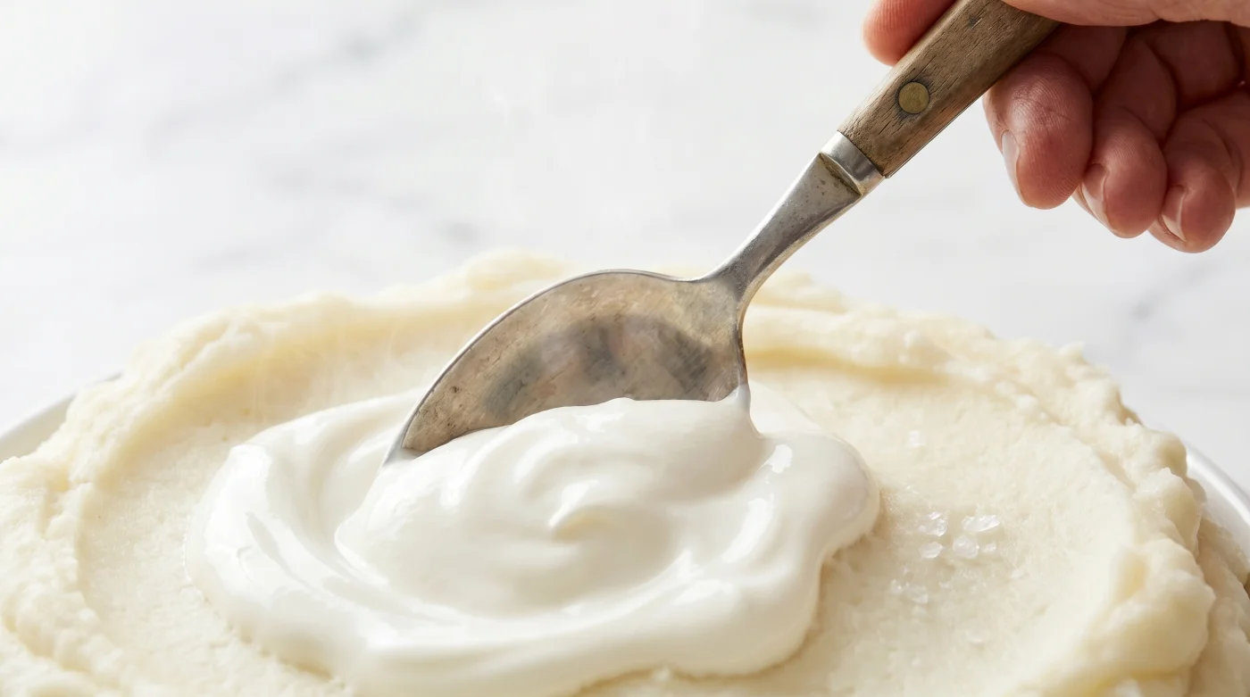 Si sientes recelo de que el toque fermentado opaque el perfil lácteo tradicional que tanto reconforta a tu familia, la clave está en la proporción invisible. Usa tu leche tibia y tu mantequilla como siempre lo has hecho para hidratar la papa recién triturada. Sin embargo, reserva los últimos instantes, justo antes de servir, para incorporar dos cucharadas soperas copeteadas de crema ácida fría por cada kilo de papa. El sabor general se vuelve más redondo y profundo en el paladar, sin que absolutamente nadie logre identificar el ingrediente secreto que cambió la presentación.