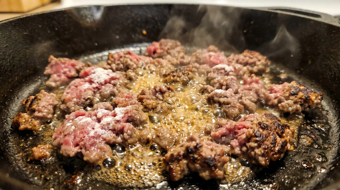 Para el purista del taco mexicano, que busca una textura suelta pero altamente hidratada, la regla inquebrantable es mantener un perfil de grasa del 80/20. Aquí, el bicarbonato debe disolverse perfectamente en agua primero, para abrazar cada gránulo de carne. Esto garantiza que, cuando el calor directo ataque, los jugos permanezcan en su lugar.
