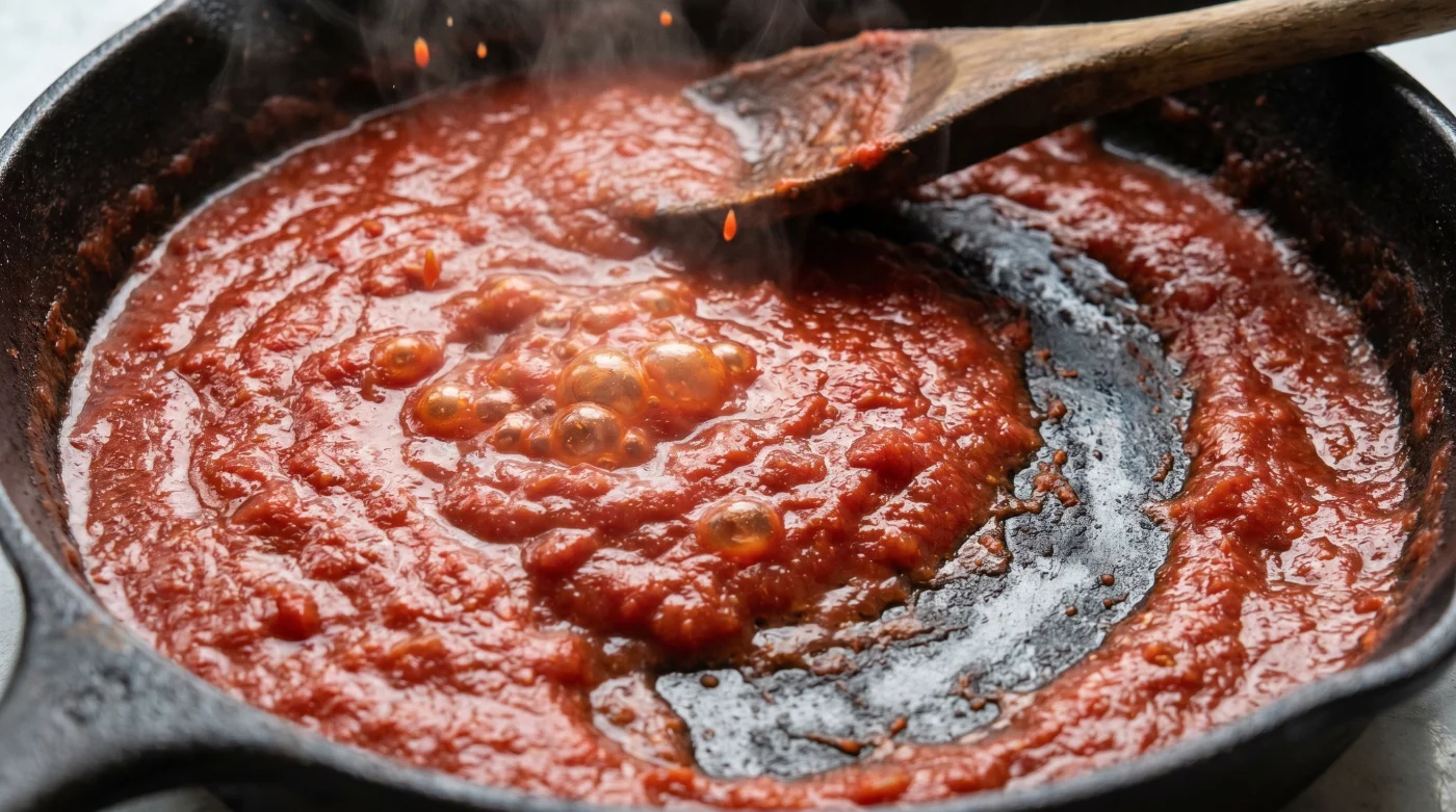 Entonces decides preparar una salsa roja casera para unos chilaquiles. Viertes los tomates triturados y escuchas ese siseo familiar, mientras el vapor denso y el aroma a ajo, cebolla asada y acidez inunda tu espacio. Sin embargo, justo ahí, debajo de esa superficie burbujeante y rojiza que parece inofensiva, una reacción química silenciosa está desmantelando todo tu esfuerzo en cuestión de diez minutos.
